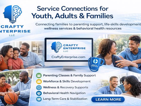 In addition to our training and mentorship work, Crafty Enterprise LLC provides resource and service connections for both youth and adults. We support individuals and families by linking them to trusted community partners and programs that address: